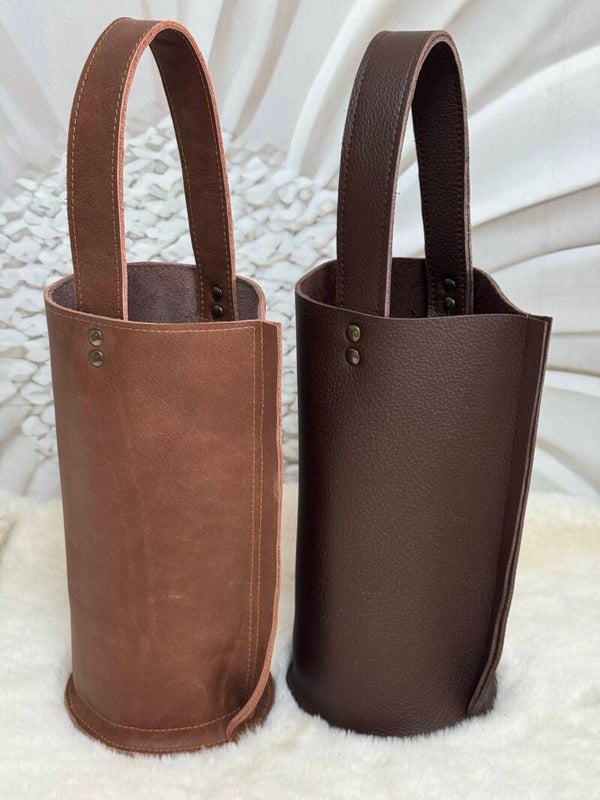 Leren wijnkoeler met logo handgemaakt en persoonlijk